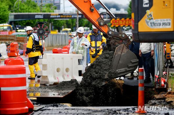 뉴시스 보도에 따르면, 13일 오전 7시12분께 광주 남구 백운동 도시철도 공사구간 옆 도로에서 땅 꺼짐(싱크홀)이 발생했다.