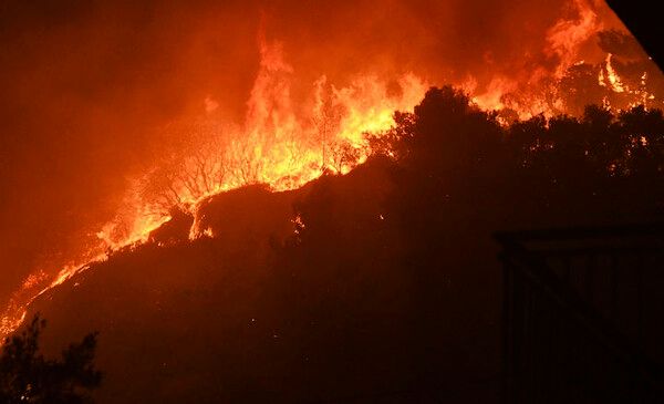 그리스의 산불이 12일 전국 82곳으로 확산하면서 전국의 주택과 농경지, 산업 시설 등이 강풍과 화염 속에 휩싸였다.