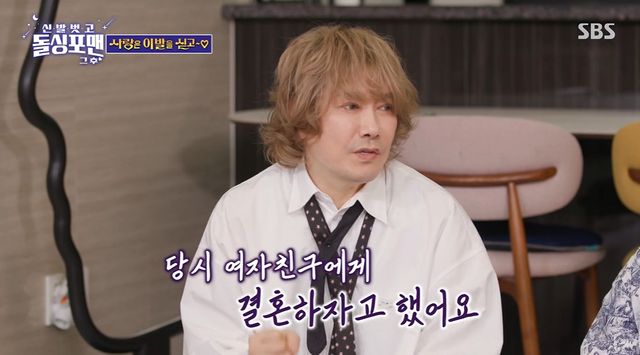 그는 "1994년에 어느 순간 얘를 놓치면 안 되겠다는 생각이 들어서 결혼 하자고 했다. 세상이랑 타협하고 잘 살겠다고 했는데 (여자친구가) 결혼 전제의 남자가 있었다. 양다리는 아니었다"고 말해 모두를 놀라게 했다.