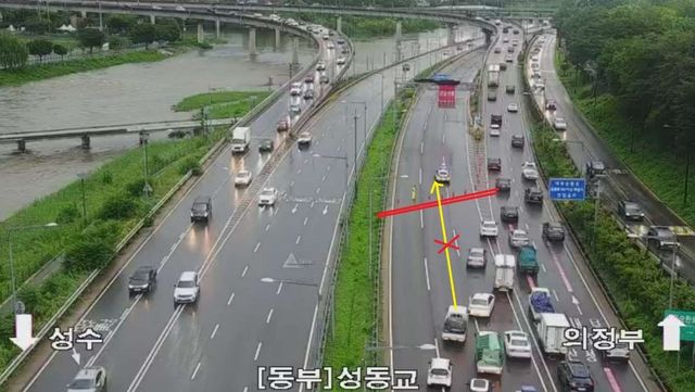 동부간선로 의정부 방향 성동 JC>도로 침수 통제 / 서울시 교통정보센터