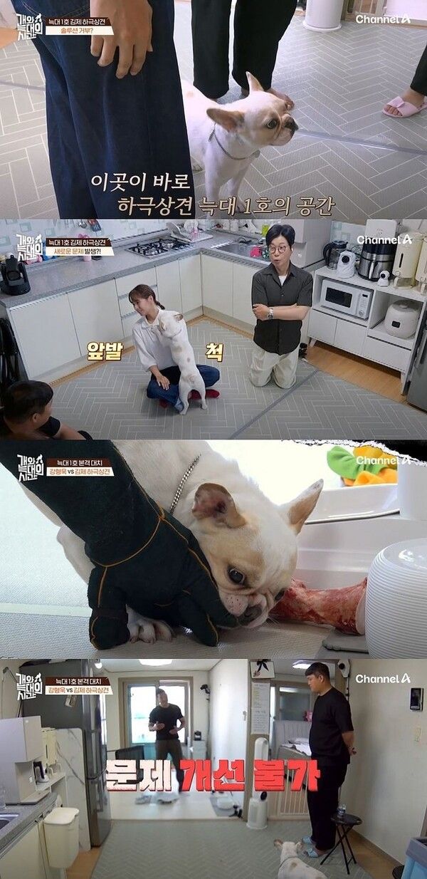 앞서 강형욱은 반려견 주인에게 '밥그릇 치우기'라는 숙제를 냈다. MC 김성주와 게스트 조윤희가 집에 방문했지만, 집안은 솔루션 전과 달라진 모습이 보이지 않았다.