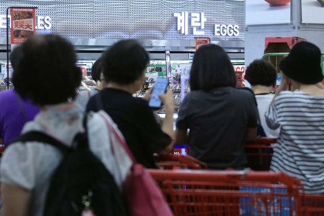 30입 계란 한 판 4990원 단 하루 특가 행사가 열린 지난 6월 서울 중구 한강대로 롯데마트 제타플렉스 서울역점을 찾은 고객들이 마트 오픈을 기다리고 있는 모습 / 뉴스1
