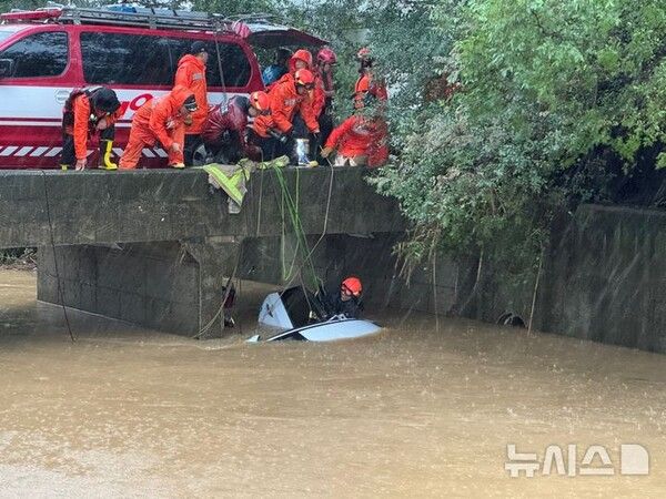 경찰과 소방 당국은 집중호우로 불어난 물에 차량이 휩쓸린 것으로 보고 정확한 사고 경위를 조사중이다.