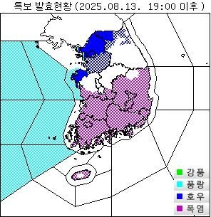 기상청이 13일 오후 6시30분을 기해 충남 서산·태안·당진에 호우경보를 발령했다.