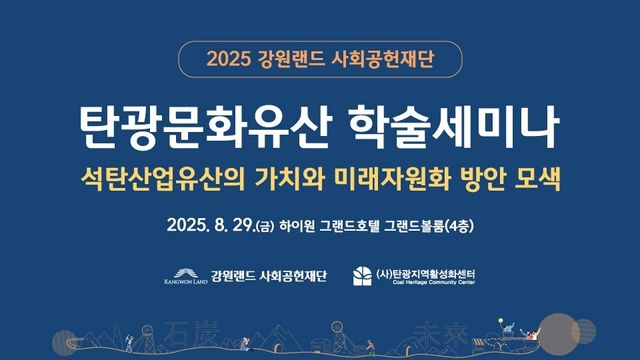 강원랜드사회공헌재단(이사장 최철규, 이하 재단)이 오는 29일 오후 1시 30분 정선 하이원 그랜드호텔 그랜드볼룸에서 석탄산업유산의 가치와 미래자원화 방안 모색을 위한 학술세미나를 개최한다.