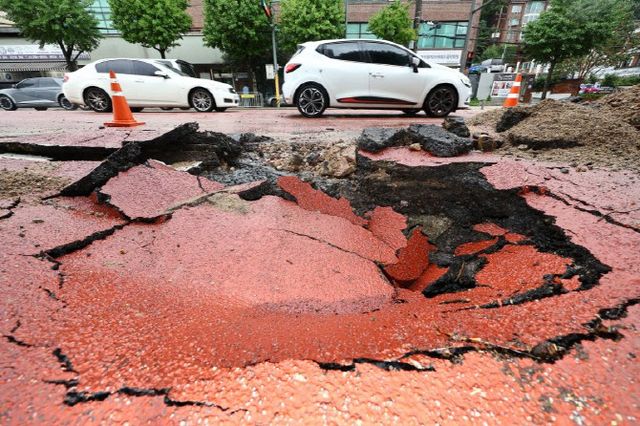 종로구는 이날 오전부터 폭우가 쏟아지면서 하수관이 역류해 포트홀이 발생한 것으로 보고 있다.