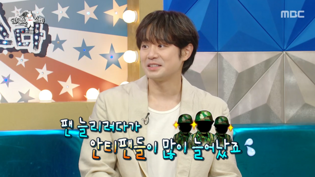 그는 “훈련병들 사이에서 ‘천정명 건들지 말라’, ‘천정명 이름 절대 부르지 말라’는 이야기가 돌았다. 그러면서 악마 조교가 됐다”면서 “근데 통제는 이뤄졌는데 안티 팬이 많이 늘어났다. 훈련소 곳곳에다 제 욕을 그렇게 써놓더라”고 당시를 회상했다.