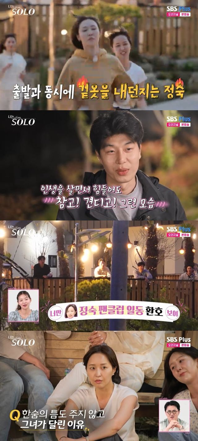이날 슈퍼 데이트권 쟁탈전을 위해 출연자들은 달리기를 진행했다. 특히 정숙은 겉옷까지 벗어 던지며 열정적으로 달리기에 임하는 모습을 보였는데, 이를 본 영수는 "압도적으로 차이 나는데? 경쟁자가 없네"라며 감탄했다.