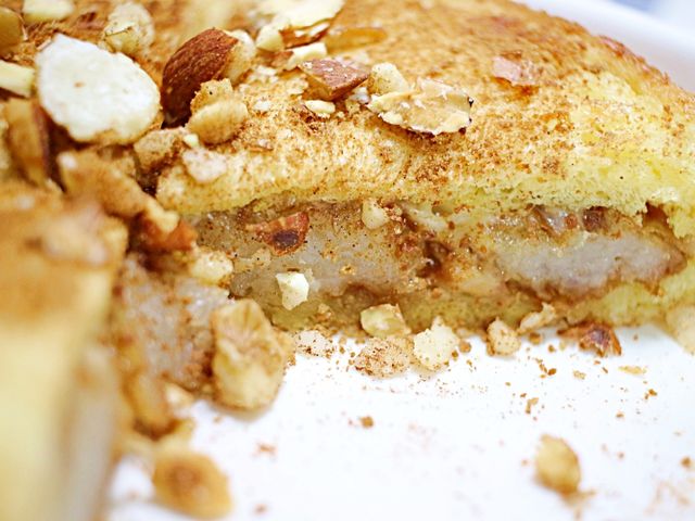 잘게 부순 견과류와 시나몬가루를 뿌려
