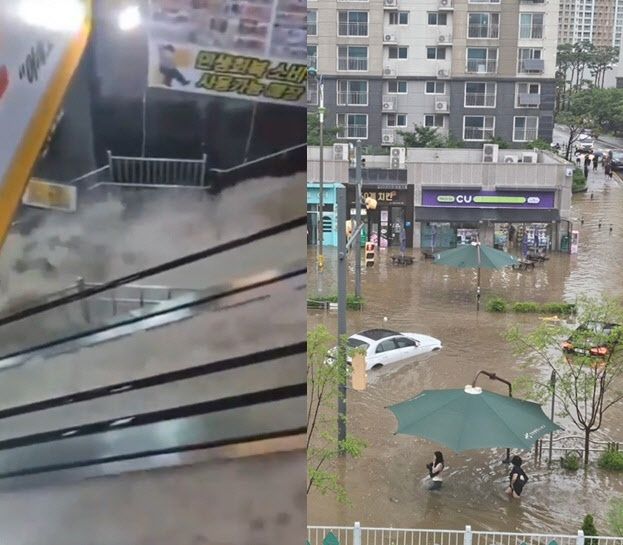 계양구에 사는 조모(56)씨는 “온 마을이 물에 잠기고 도로가 마비됐다”며 “산에서 토사가 빗물에 흘러내려 배수구를 막은 것 같다”고 설명했다.