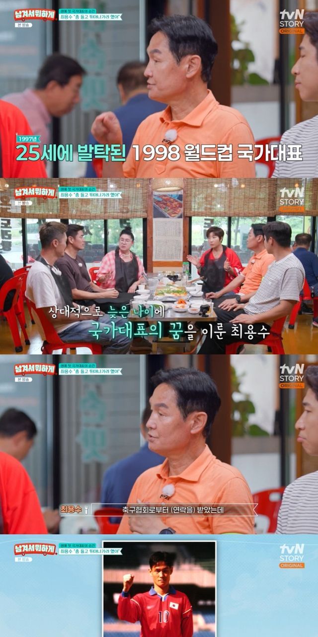 이날 최용수가 국가대표로 발탁된 순간을 회상했다. 그는 "그때가 20대 중반이었다. 27살 때 협회 연락을 받았는데 내 인생 진짜 게임이 시작되는구나 했다"며 늦은 나이에 국가대표 선수가 되었음을 밝혀 감탄을 자아냈다.