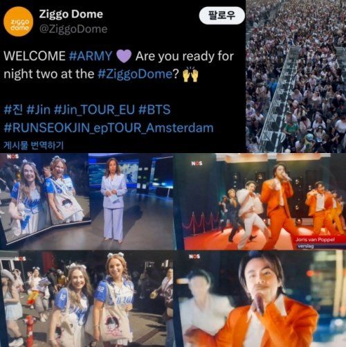 해외 반응도 폭발적이었다. 팝 코어는 “암스테르담 공연에서 진은 잊을 수 없는 무대를 선사했다”고 극찬했고, 지고돔 공식 계정은 공연 며칠 전부터 메인 헤더를 진 사진으로 교체하며 ‘슈퍼스타 맞이 준비’를 알렸다. 공연 당일에는 관객 물결과 무대 영상을 연이어 업로드하며 역대급 환영 무드를 이어갔다.