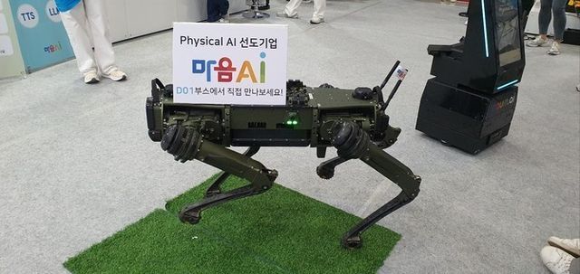 지난 5월14일부터 16일까지 서울 코엑스에서 열린 'AI EXPO 2025' 내 설치된 마음AI 부스에서 시연 중인 로봇개 '비전 60'. = 박기훈 기자