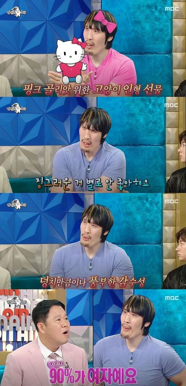 최홍만은 "사람은 한결같아야 된다"며 "지금도 물론 헬로키티를 좋아한다"고 밝혔다.