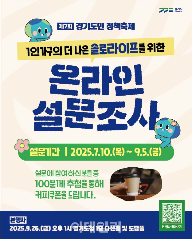 사전행사에 참여하지 못하는 도민들을 위해 온라인 설문조사도 함께 진행하고 있다. 행사에 대한 자세한 내용은 경기도 대표 홈페이지와 인스타그램, 유튜브 등 채널을 통해 확인할 수 있다.