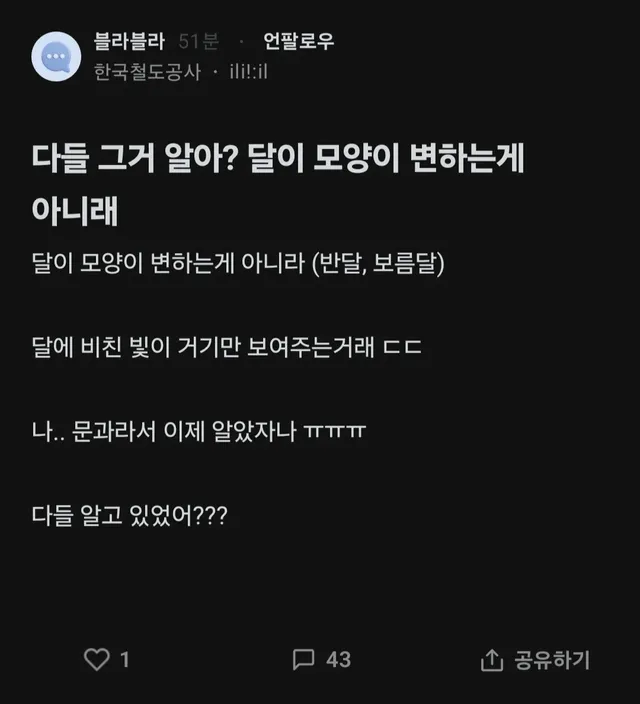다들 그거 알아? 달이 모양이 변하는게 아니래