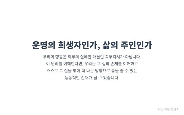당신의 이야기는 ‘운명’이 아닌, ‘용기’가 될 거예요.나만 아는 상담소 첫 번째 책, 『운명이라는 착각』 출간