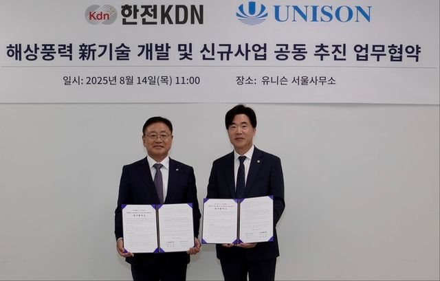 [프라임경제] 풍력발전 전문기업 유니슨(018000)은 전력 정보통신기술(ICT) 전문기업 한전KDN과 해상풍력 기반 ICT 융합 신사업 발굴 및 에너지 보안 강화를 위한 업무협약을 체결했다고 14일 밝혔다.