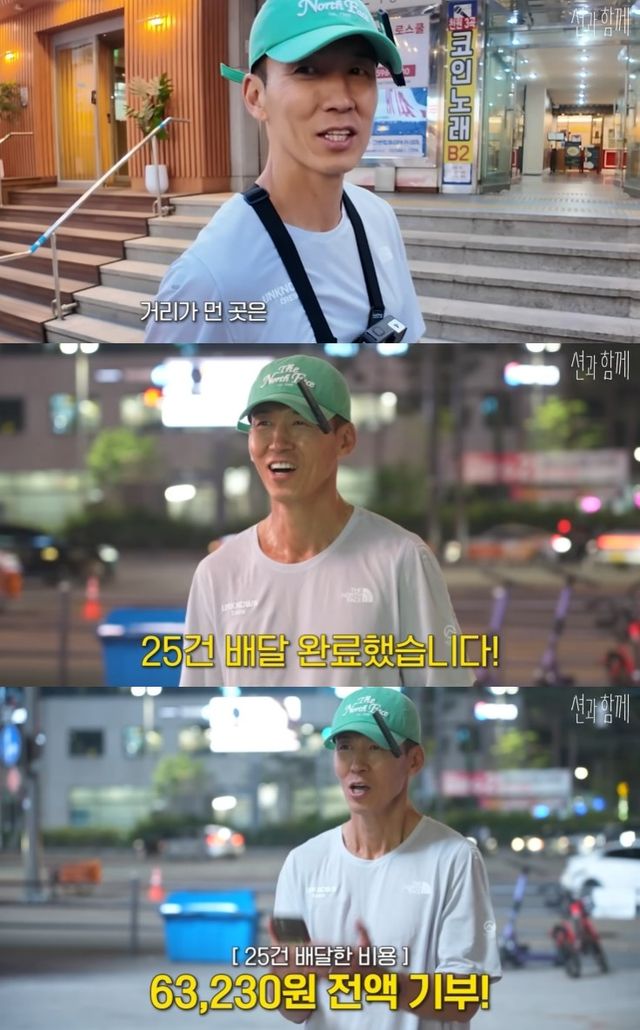 배달을 마친 션은 "정말 많은 분들이 인사해주시고, 음식 받으신 분들이 맛있게 드셨을 거라는 상상을 하면서 너무 즐거웠다"며 6만 원을 흔쾌히 기부했다.