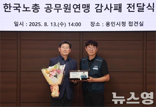 한국노총 공무원노동조합연맹(이하 공무원연맹) 김현진 위원장 등은 13일 이상일 시장에게 감사패를 전달하며 “공직자의 복지 향상과 업무 집중 여건 조성을 위해 기울인 노력에 깊이 감사한다”고 밝혔다.