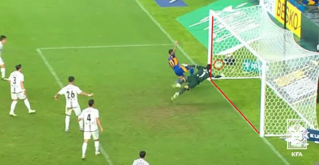 협회는 “광양축구전용구장의 오프사이드 그래픽 구현 가능한 5대의 카메라 중 해당 장면에서는 한 대의 카메라만이 오프사이드 판독이 가능한 앵글이었다”며 “이 카메라를 통해 구현된 당시의 상황이 경기 전 VAR 캘리브레이션을 진행할 때와는 달리 오류가 발생했다”고 밝혔다. 그러면서 “VAR실에서는 화면에 보이는 온·오프사이드 판정을 내린 후 주심에게 전달했고 주심이 이를 받아들여 골 취소를 하게 됐다”고 덧붙였다.