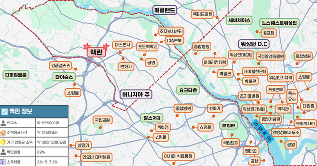 펜타곤·CIA·백악관과 지근거리…워싱턴D.C. 보다 조용하고 세금·인프라 조건 탁월