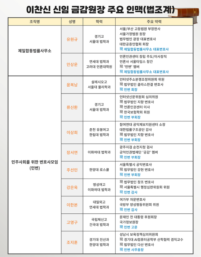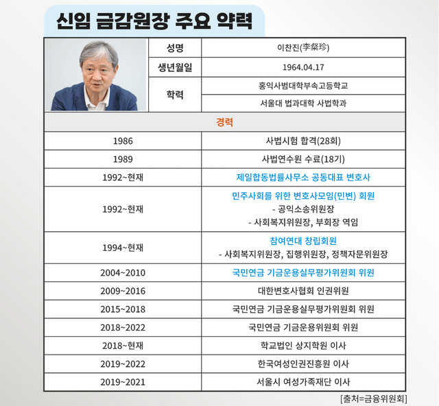 이찬진 신임 금감원장, 법조계·사회단체·공공기관 아우르는 폭넓은 네트워크 조명