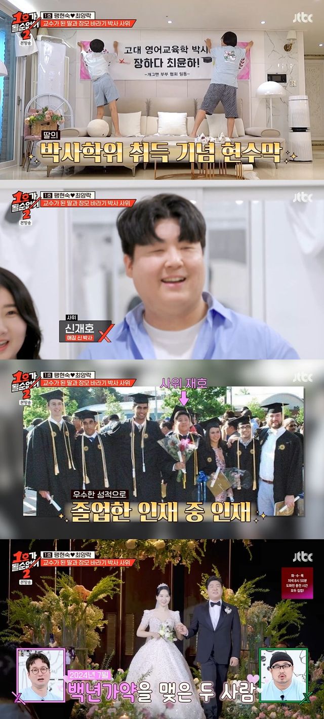 14일 방송된 JTBC ‘1호가 될 순 없어2’에서는 팽현숙과 최양락이 최근 명문대 박사 학위를 취득한 딸 최윤하의 축하 파티를 위해 딸과 사위를 집으로 초대했다.