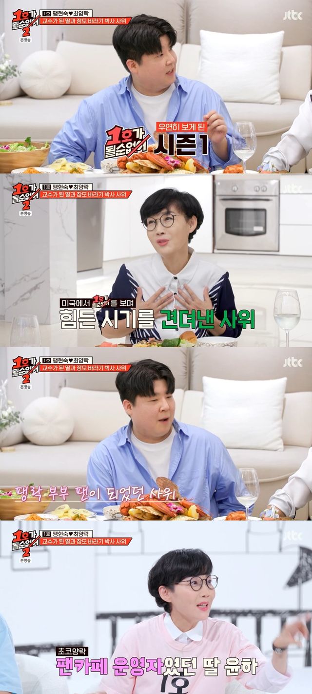 14일 방송된 JTBC ‘1호가 될 순 없어2’에서는 팽현숙과 최양락이 최근 명문대 박사 학위를 취득한 딸 최윤하의 축하 파티를 위해 딸과 사위를 집으로 초대했다.