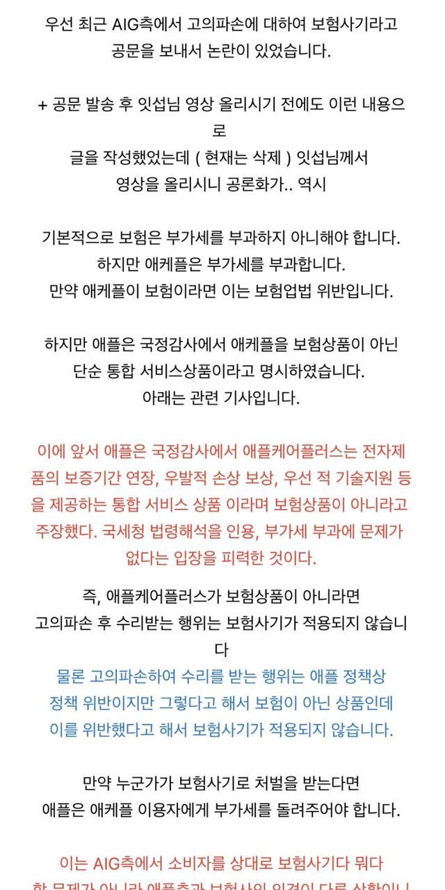 애플케어는 보험 아니라고 했다가 진퇴양난에 걸린 애플,,