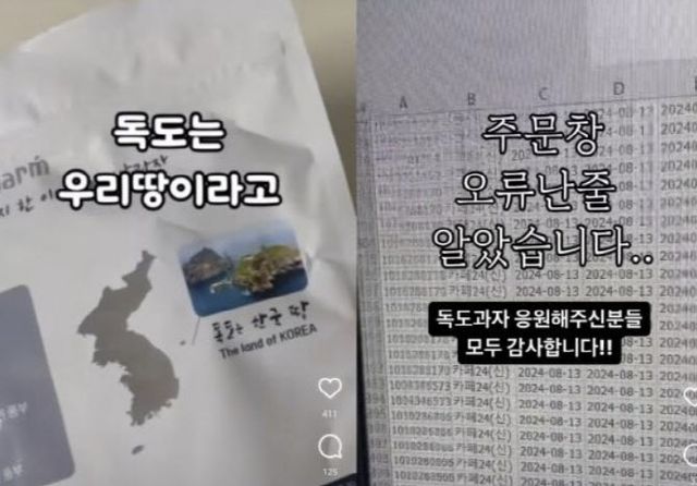 이후 맘카페 및 여러 온라인 커뮤니티 등지에서 이 소식이 알려지면서 ‘독도 쌀과자’라는 별칭이 붙었고, 이후 온라인상에서 “먹어서 돈쭐(돈+혼쭐)을 내주자”며 자발적 구매 의사로 응원을 나타내는 이들이 늘어났다. 평일 기준 하루 70~80건 정도였던 주문은 수천 건으로 폭증하면서 해당 전 제품이 품절됐다.