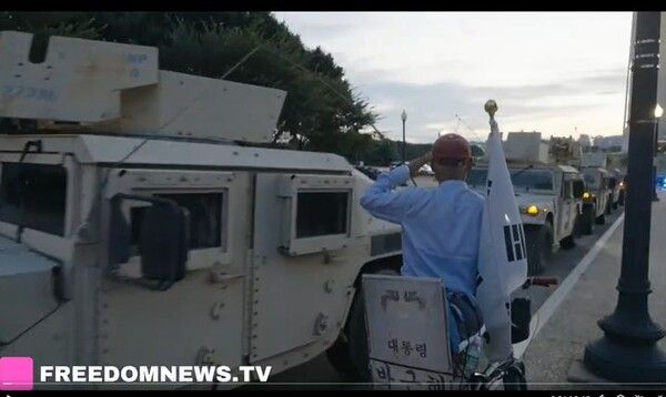도널드 트럼프 미국 대통령이 수도 워싱턴DC 치안 개선을 이유로 시내 군대 투입을 지시해 찬반 논란이 뜨거운 가운데, 온라인 상에서는 워싱턴 시내를 주행하는 장갑차 행렬에 경례하는 한 노인의 영상이 큰 주목을 받고 있다.