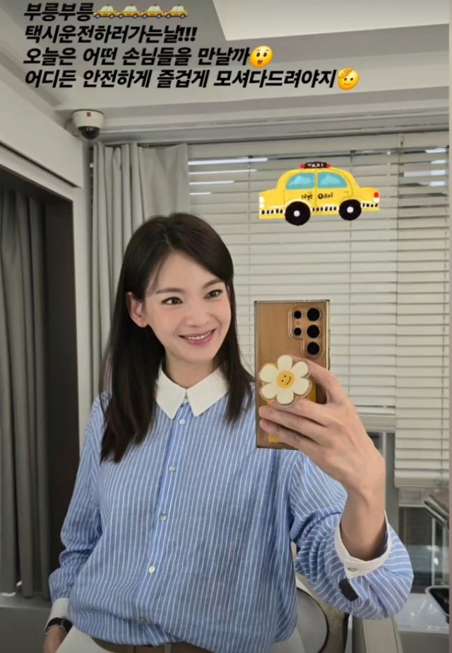 정가은은 15일 광복절 아침, 자신의 인스타그램에 “부릉부릉, 택시 운전하러 가는 날!!! 오늘은 어떤 손님들을 만날까. 어디든 안전하게 즐겁게 모셔다드려야지”라는 글과 함께 거울 셀카를 공개했다. 파란색 스트라이프 셔츠에 흰색 칼라가 돋보이는 단정한 복장을 갖춘 그는 환한 미소로 ‘근무 준비 완료’ 모습을 보여줬다.