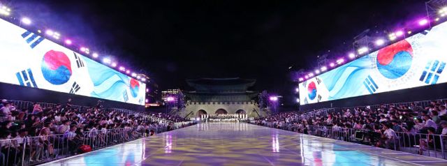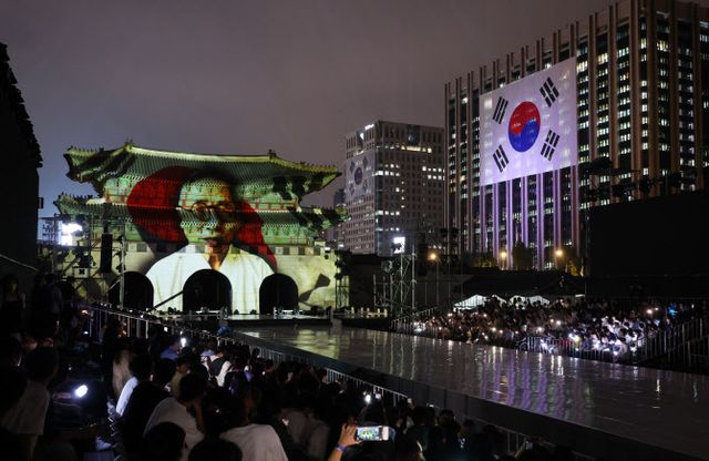 | 14일 서울 경복궁 흥례문광장에서 열린 광복 80년 전야제 ‘우리는 빛이다’ 행사에서 미디어아트가 펼쳐지고 있다. (사진=연합뉴스). |
