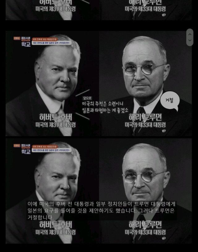 3. 그러나 당시 미국의 트루먼 대통령은 카이로선언으로 한국의 독립이 약속 됐기 때문에 일본의 요구를 들어줄수 없다고 함