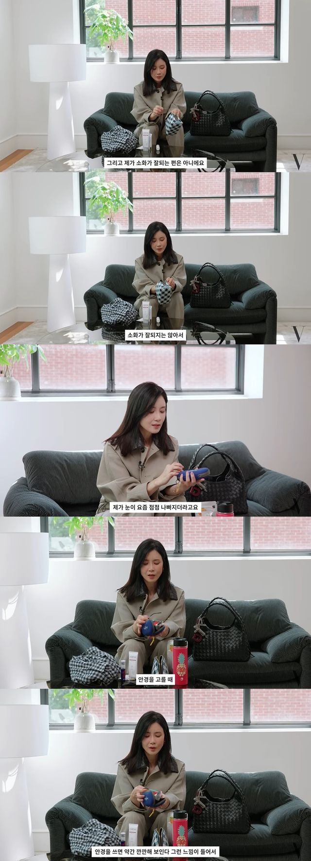 안경집을 꺼낸 이보영은 "제가 눈이 요즘 점점 나빠지더라. 안경을 고를 때 안경을 쓰면 '깐깐해 보인다' 그런 느낌이 들어서 나름 깐깐하지 않은 듯한 안경을 찾았다"고 말했다.