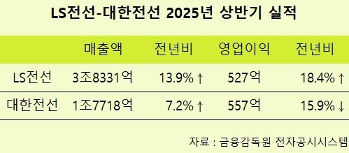 국내 전선업계 양강인 LS전선과 대한전선이 ‘전력 슈퍼사이클’에 힘입어 올 상반기 역대급 실적을 올린 것으로 나타났다.
