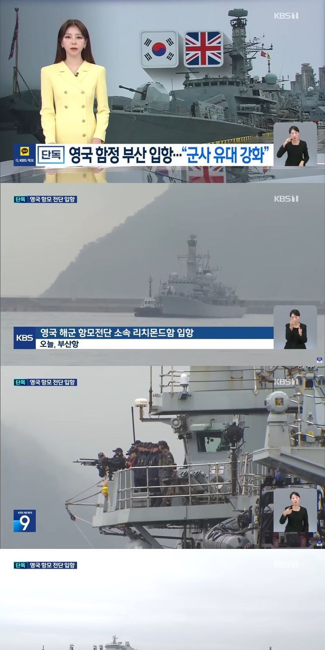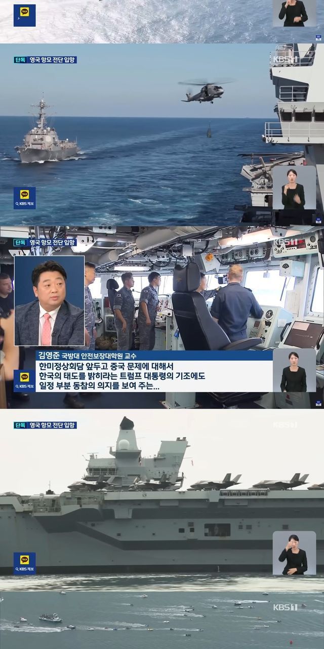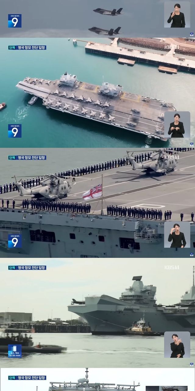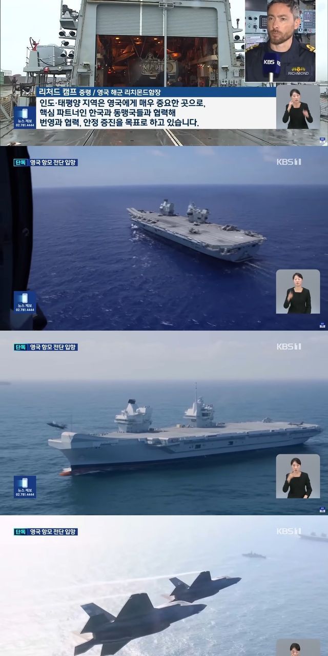 지난 4일 동해상에서 영국 항모전단 소속 F-35B 전투기와 공중급유기가 우리 공군과 연합훈련을 진행했고, 다음 달엔 항공모함 프린스오브웨일스함이 우리 해역에서 해상 항공전력 시연에 나설 예정.