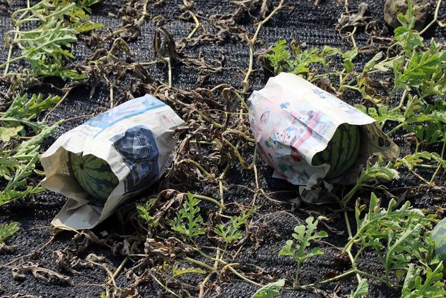 폭염에 신문지 모자 쓴 수박 / 뉴스1