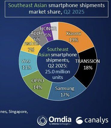 샤오미는 2021년 2분기 이후 처음으로 동남아 스마트폰 시장 1위를 탈환하며 470만대를 출하했다. 카날리스는 레드미 시리즈 판매 호조와 유통망 확장 효과가 주효했다고 분석했다.