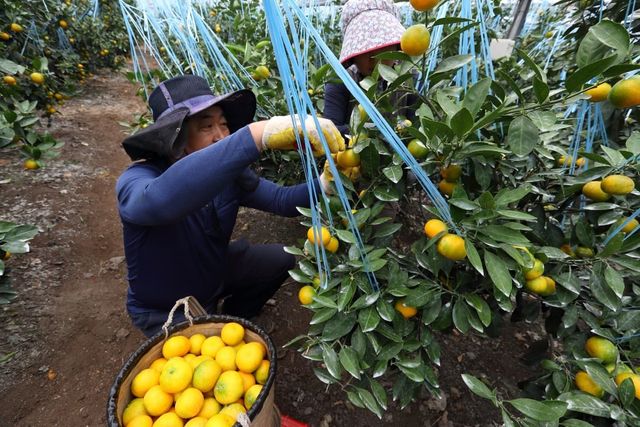 이달 하우스감귤 출하량은 지난해보다 3.9% 증가할 것으로 보인다. 착색이 늦어 출하가 지연됐고 열매가 커지는 시기의 낮은 기온(비대기 저온)과 열매 솎기 감소(적과 감소)로 작은 과일(소과) 비율은 늘었지만 일조량 증가로 당도는 오히려 향상됐기 때문이다.
