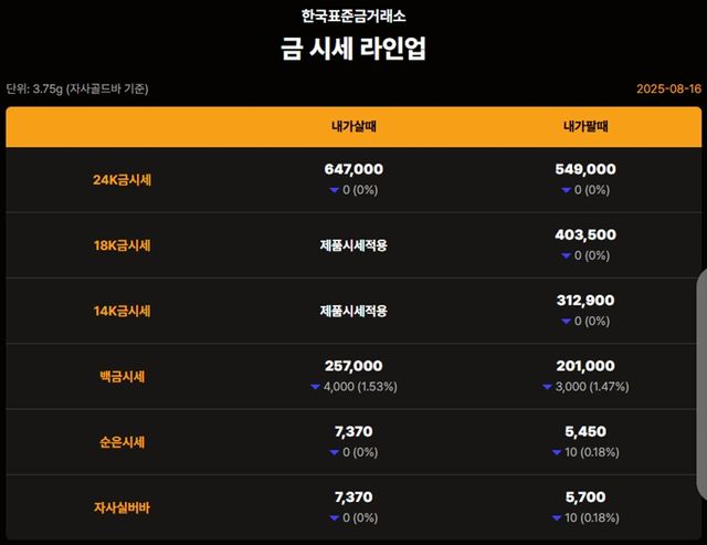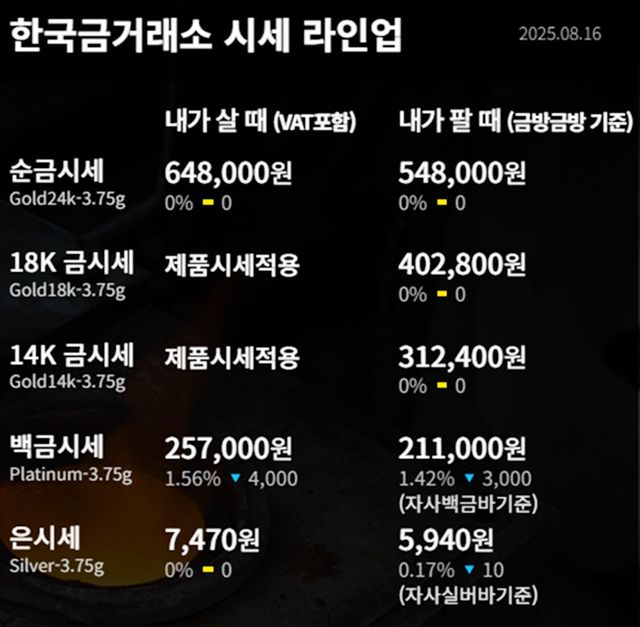 순금(24K) : 매입가 64만 8000원 / 매도가 54만 8000원