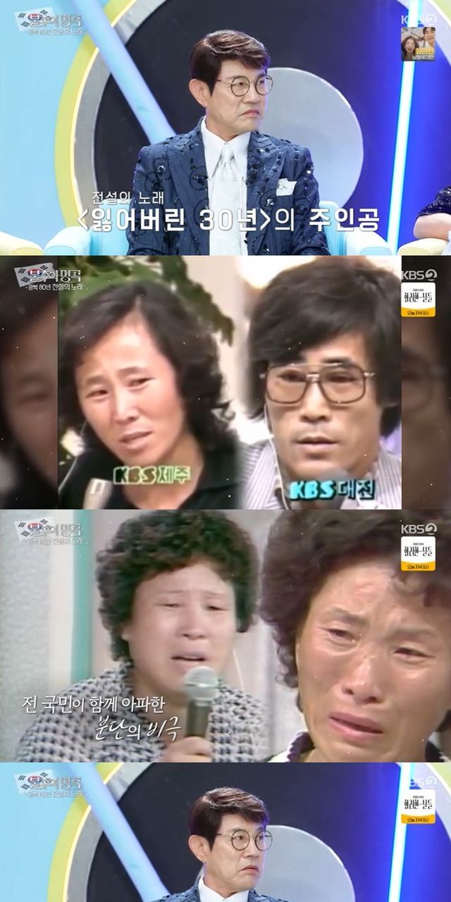 이날 설운도는 전설의 노래 '잃어버린 30년'에 대해 이야기했다. 과거 이산가족 찾기를 시도한 최초의 방송 '이산가족을 찾습니다'로 나라가 울었던 시절을 회상한 설운도는 "가요 역사의 한 페이지를 쓴 거 같다. 그렇게 히트 되기 쉽지 않다. 제 개인 노래이기도 하지만 역사의 아픈 노래다"라고 운을 뗐다.