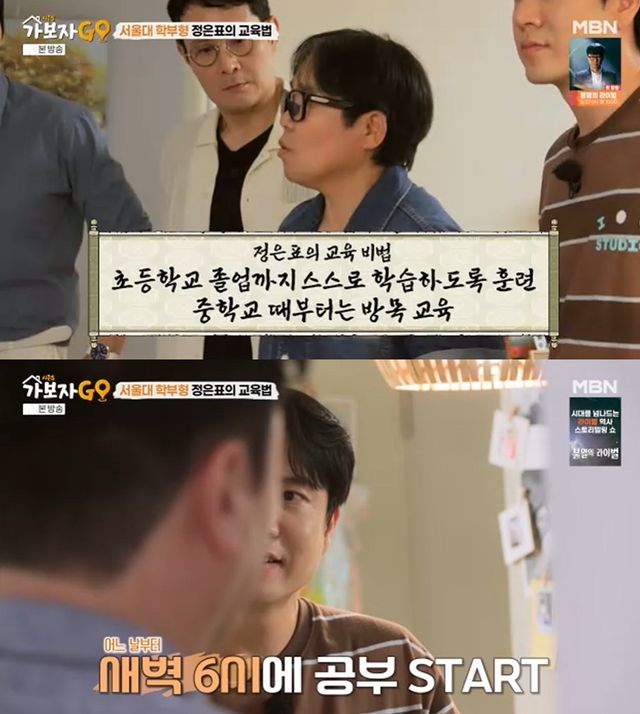이에 정은표는 "초등학교 졸업 때까지 스스로 하도록 훈련시켰고, 중학교 때부터는 전혀 관여를 안 했다"고 이야기했다.