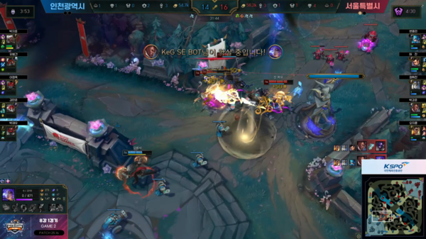 8강 1경기는 서울 ‘KT 롤스터 아카데미’ 팀과 인천 ‘HLE 아카데미’ 팀의 대결로 펼쳐졌다. 서울은 1세트 승리로 쾌조의 출발을 알렸다. 이후 2세트에서 인천이 승기를 잡는 듯 했으나 경기 중반 한타에서 승리를 거두며 대역전에 성공, 그대로 2세트를 승리해 4강에 진출했다.