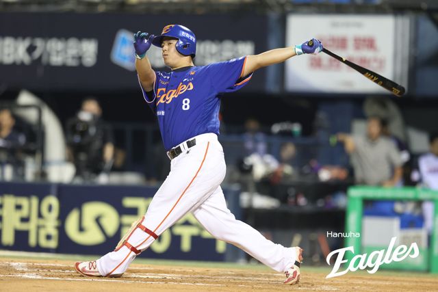 두 팀은 홈런으로 점수를 주고 받았다. 8회말 김진호 상대 선두 문현빈이 볼넷으로 출루, 노시환이 김진호의 4구 149km/h 직구를 받아쳐 우측 담장을 넘어가는 우월 투런포를 쏘아올렸다. 노시환의 개인 8호 연타석 홈런, 점수는 다시 6-6 동점.
