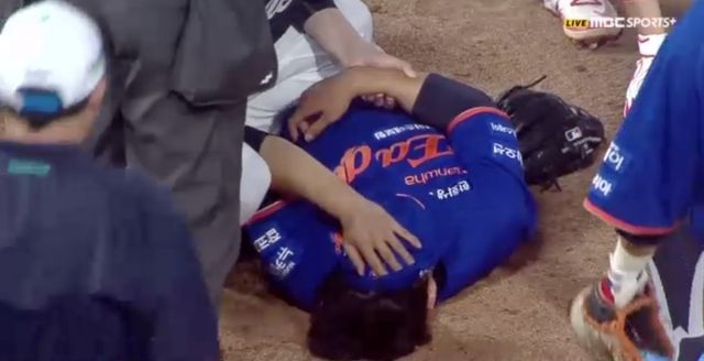 그런데 이어진 최정원과의 승부, 볼카운트 1-1에서 3구 슬라이더를 타격한 최정원의 타구가 문동주에게 향했다. 타구는 문동주의 오른팔을 때렸고, 공에 맞은 문동주는 마운드에 쓰러져 고통을 호소했다. 트레이닝 코치는 물론 양상문 투수코치와 그라운드에 있던 야수들까지 모두 마운드로 달려나와 문동주의 상태를 살폈다.