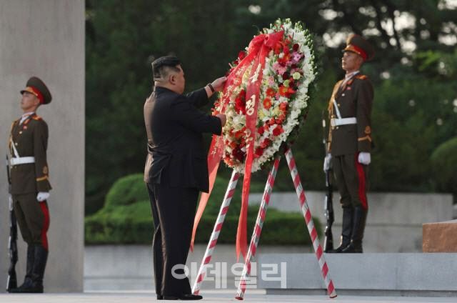 이어 김 위원장이 소련군 전사자를 추모하기 위해 해방탑을 찾기도 했다. 해방탑은 1945년 한반도 38선 이북에서 일본군을 몰아내다가 전사한 소련군을 추모하는 상징물이며 지난해 6월 방북해 사실상 북러 군사동맹을 부활시킨 블라디미르 푸틴 러시아 대통령이 찾아간 곳이다. 이 자리에서 김 위원장은 ‘소련군 열사들의 공적을 우리는 잊지 않는다’라는 문구가 적힌 화환도 직접 헌화하기도 했다.