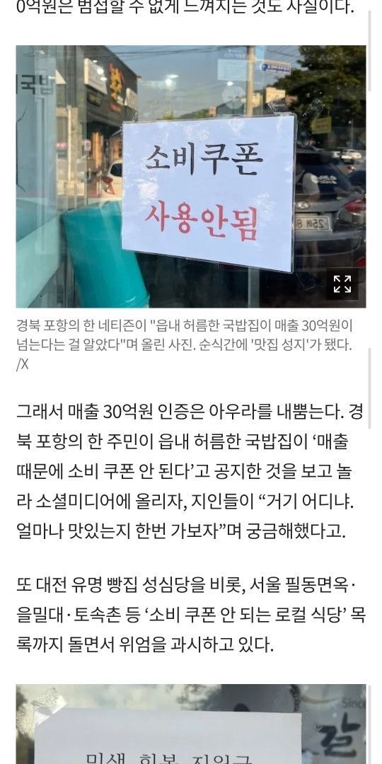 이 작은 가게가 연 매출 30억 소비 쿠폰에 강제 공개됐다 아무튼, 주말 매출 강제 공개된 전국 자영업자들