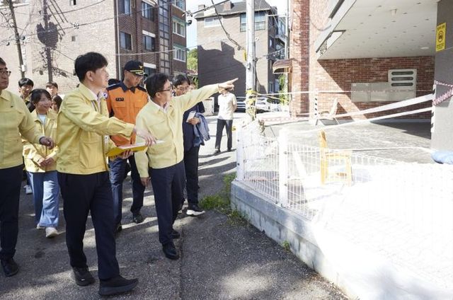 [와이뉴스] 김동연 경기도지사가 15일 최근 집중호우로 옹벽에 금이 가 붕괴가 우려되는 수원시 장안구 파장동의 다세대주택 현장을 찾아 신속한 조치와 이재민 지원을 지시했다.